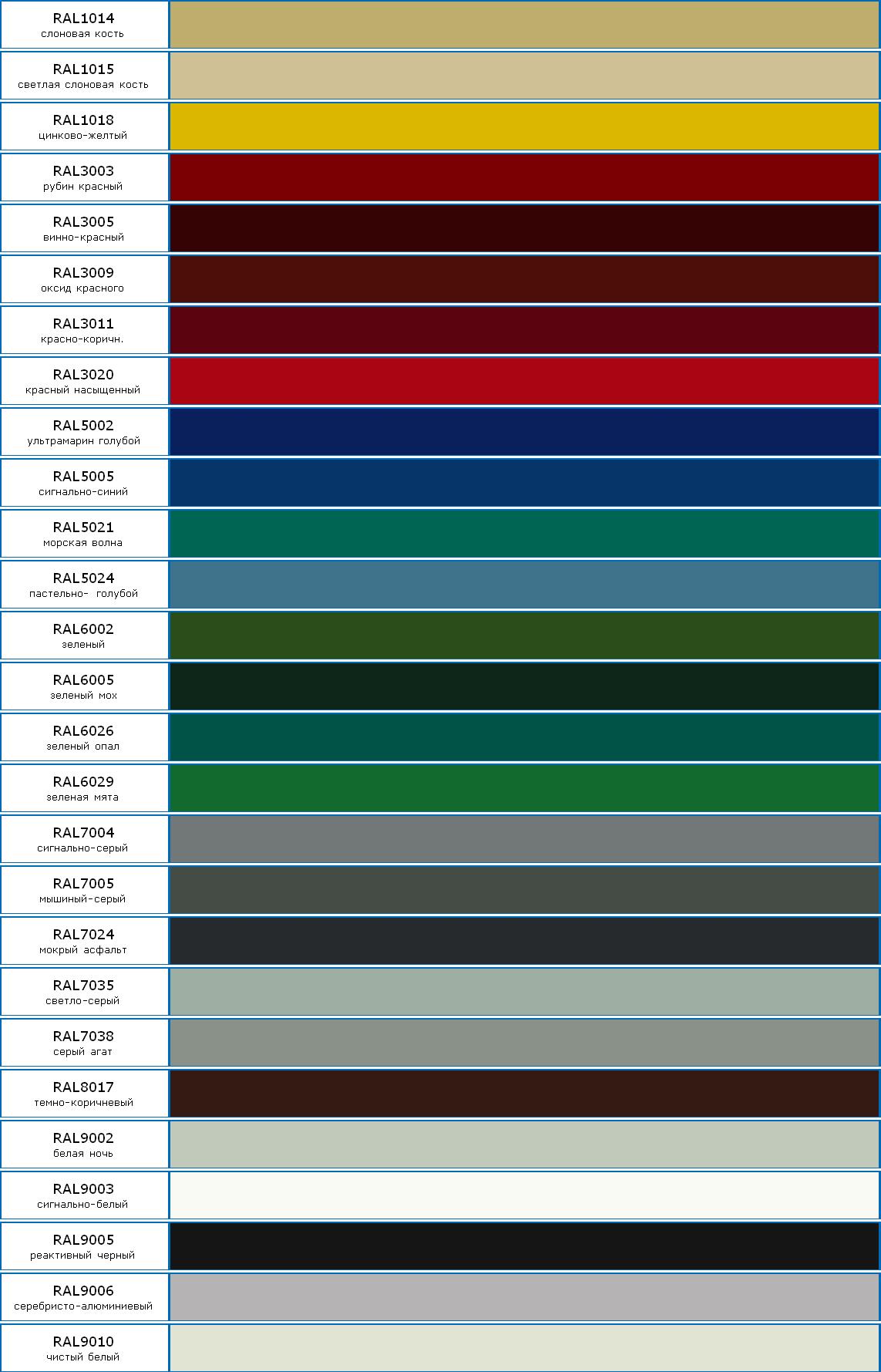 Для Вашего удобства на нашем сайте приведена таблица основных цветов, по которой Вы можете подобрать нужный вам оттенок профильного листа